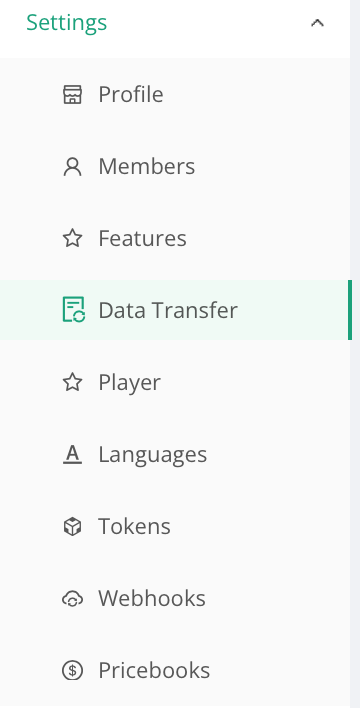 Data Transfer can be found in Settings > Data Transfer.