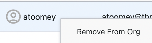 Once all tokens are removed from association with a user, the user may be removed from the org by right-clicking on the user name in the "Members" tab inside the "Members" area.