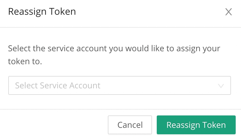 Tokens my only be reassigned to a service account. Follow the directions at the top of this page to create a service account if one does not exist.