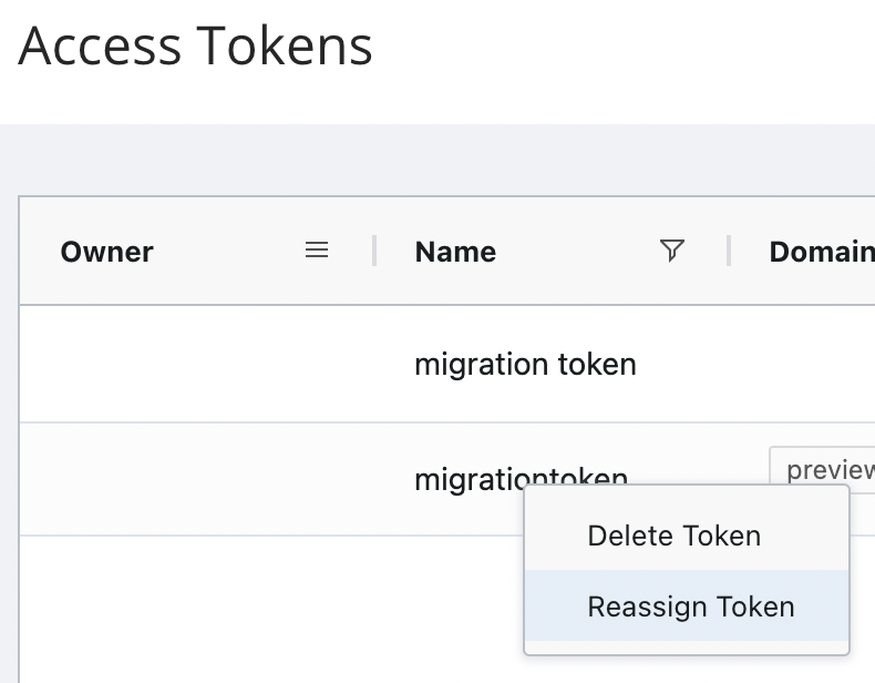 From the list of existing tokens, right-click the token and select "Reassign Token".