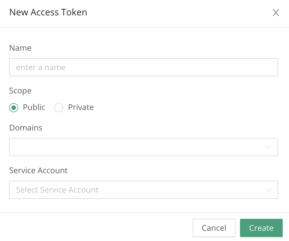 Fill in all fields, including selecting the appropriate service account. A public token cannot be created if no service account is selected.