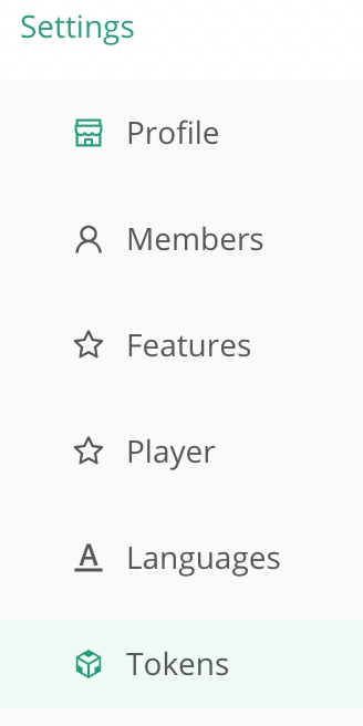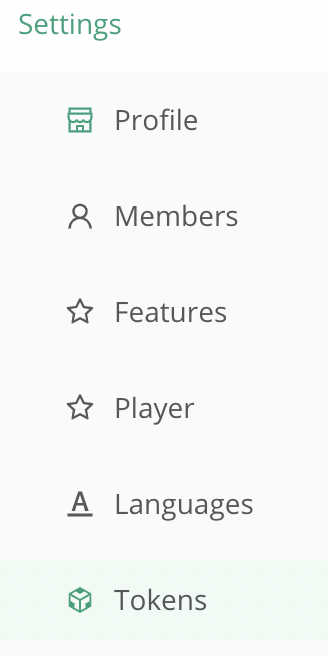 To create a token, under "Settings" in the left-hand menu, select "Tokens."