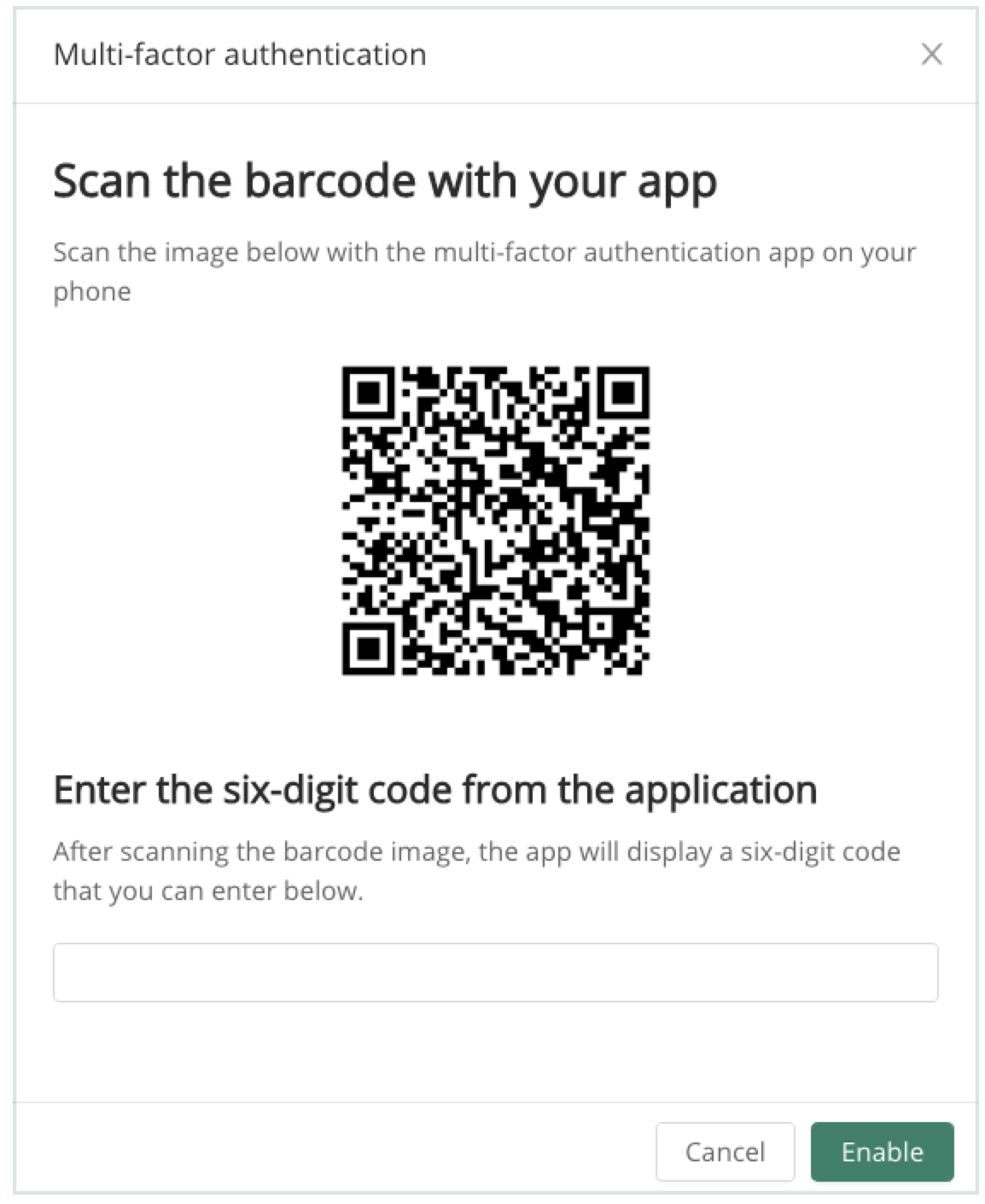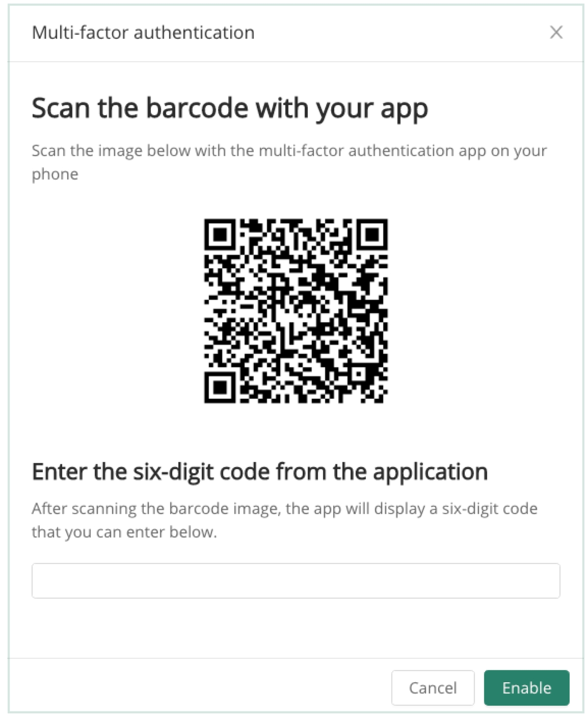 Scan the QR code and enter the 6 digit code from your chosen authenticator app.