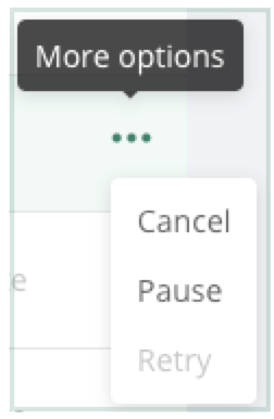 Jobs can be paused and resumed from within the Jobs listing via the **More Options** Menu on the right of side of each Job.<br>