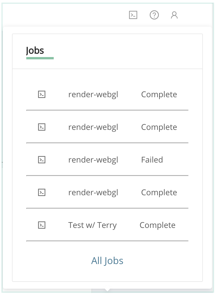 To the left of the User Profile there is an icon which allows for a quick preview of recent Job Status.<br>