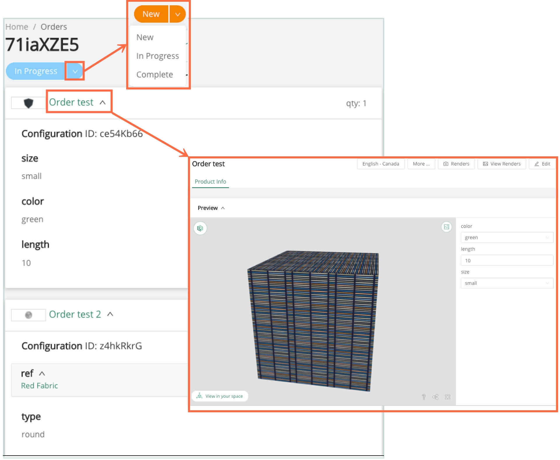 🛍 Configuration groups can be created to store wishlist-style configurations using the extended Orders functionality. To differentiate between “wishlists” and items that have been purchased, Order statuses have been updated to include “List” and “In Cart”. The statuses, individual configurations, and quantities can be updated via Threekit public APIs.This will help keep track of configurations as move through workflows and will enable analytics for configurations and states.