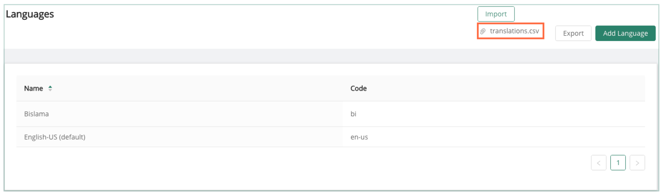 Each language will be represented by a column on the CSV, include translations where appropriate