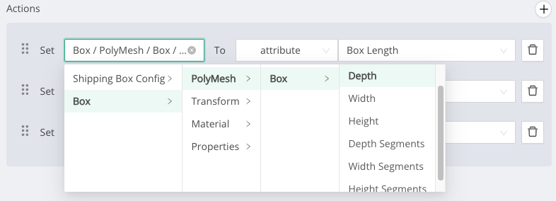 Imagine a company sells various boxes which need to be visualized to customers. The geometry of the box is simple enough a single asset will be resized using configuration rules in the threekit player.