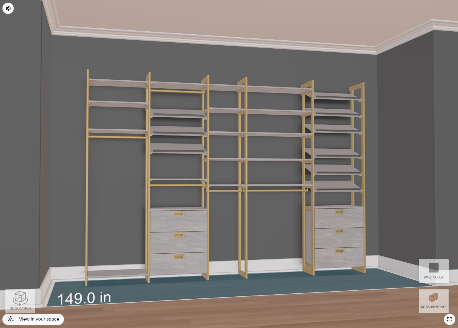 Lastly, the following image is an example of a shelving system, where users can choose how to configure the contents of the different shelf columns: