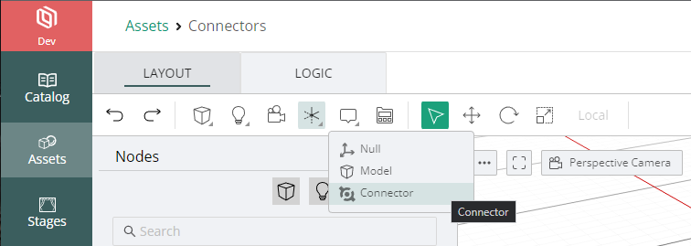 The Connector node is composed primarily of a transform (a way to specify its location, rotation, and scale) and a special set of properties that allows connectors to communicate with each other. The only method of defining how a connector is compatible with other connectors is through the use of Node Tags. It is important, therefore, to add at least one Node Tag to each of your connectors. Currently, the Connectors are primarily useful in conjunction with a Layout Container setup. This is because the Layout Container is the only method currently available that allows the end user to select and move objects around. Snapping of objects together at connection points can only occur if the user can select and move an object.