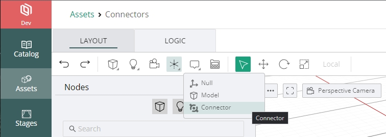 To import Connectors from a 3D file, the ThreeKit platform looks for nodes that have the TK_CONNECTOR_ prefix as part of the node name. For example, TK_CONNECTOR_MyConnector will import in ThreeKit as a Connector node named MyConnector. Users can create these nodes in their favorite 3D software as either NULLs/Empty Groups, Dummies, or Locators. Meshes with the TK_CONNECTOR_ prefix will not be converted to Connectors on import. The asset can then be exported using a format like FBX, as it supports these types of NULL/Group nodes.