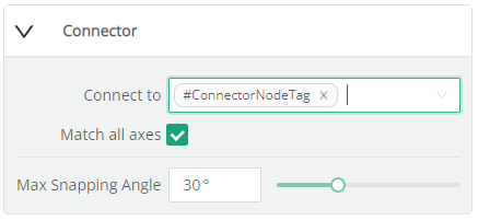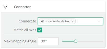 IMPORTANT: Connectors will only snap to other connectors that match the Connect to Node Tags as well as the Axis requirements. If one of the two connectors has the Match All Axes = OFF, and the other has