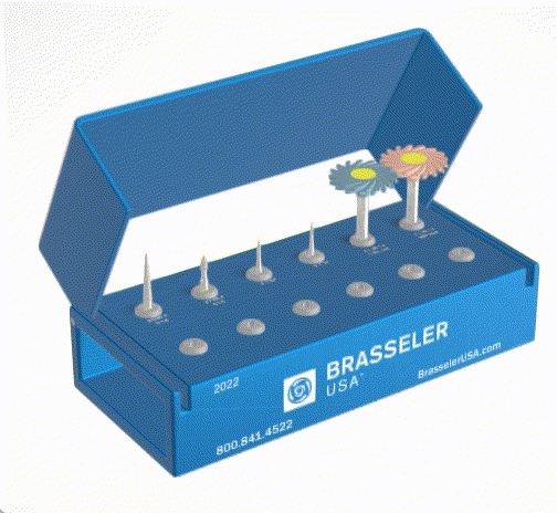 This is an example of a dental kit, where different dental burs can be chosen to populate a specific kit box. The user could drag them around to choose their specific location in the kit.