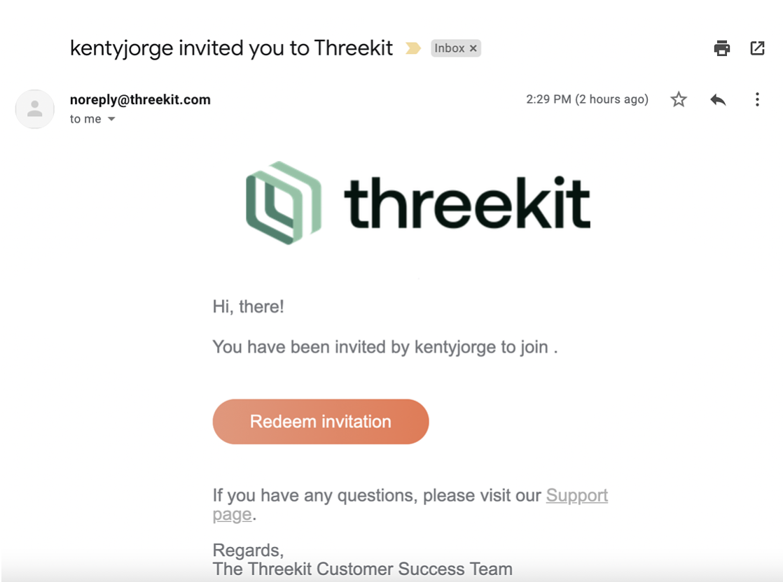 Upon receiving the email, the contact will need to click ‘Redeem invitation’ in each email and create one login for Preview, and one login for Admin-FTS. Bookmark https://admin-fts.threekit.com/ and https://preview.threekit.com/ so these respective orgs can be accessed using the created login going forward.