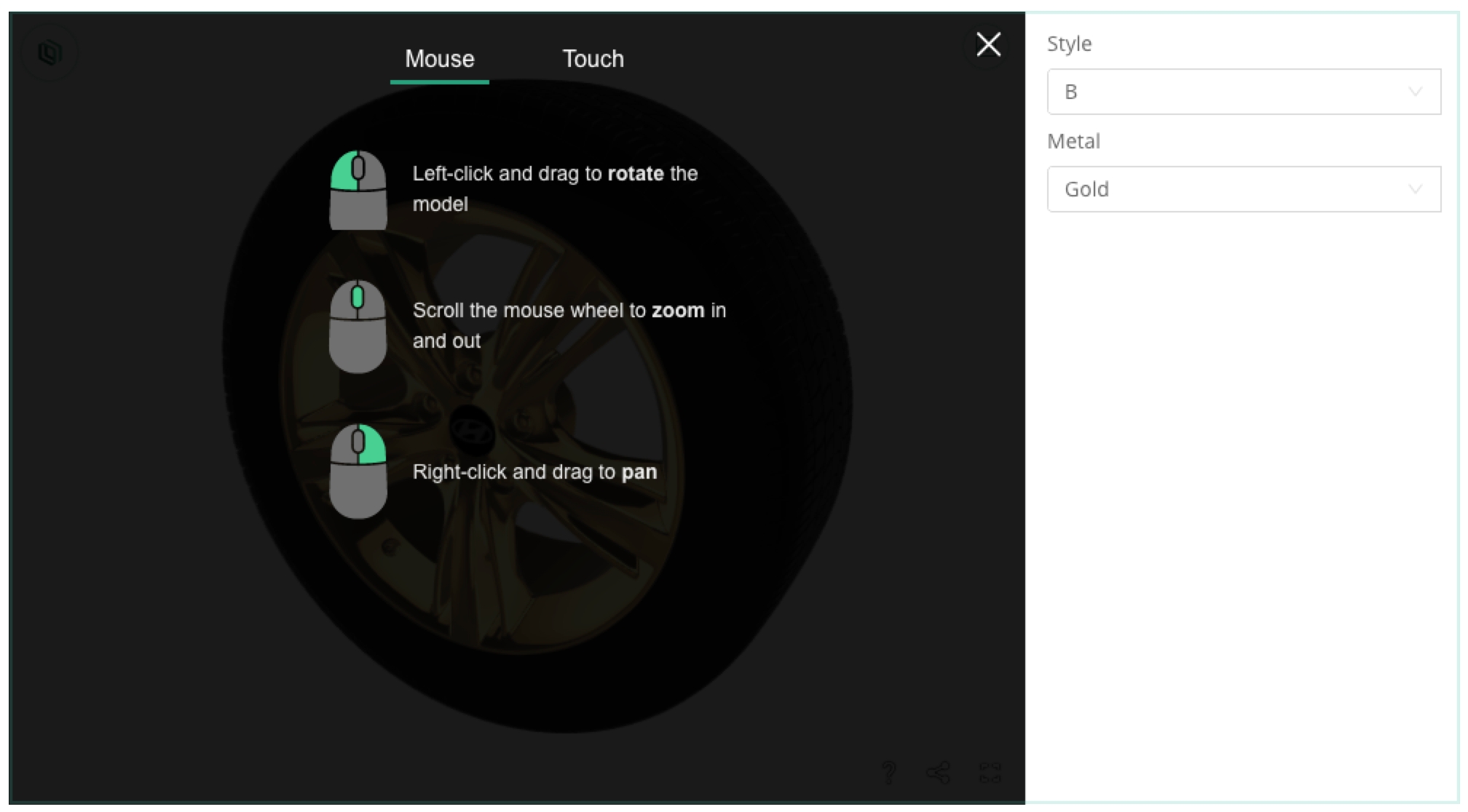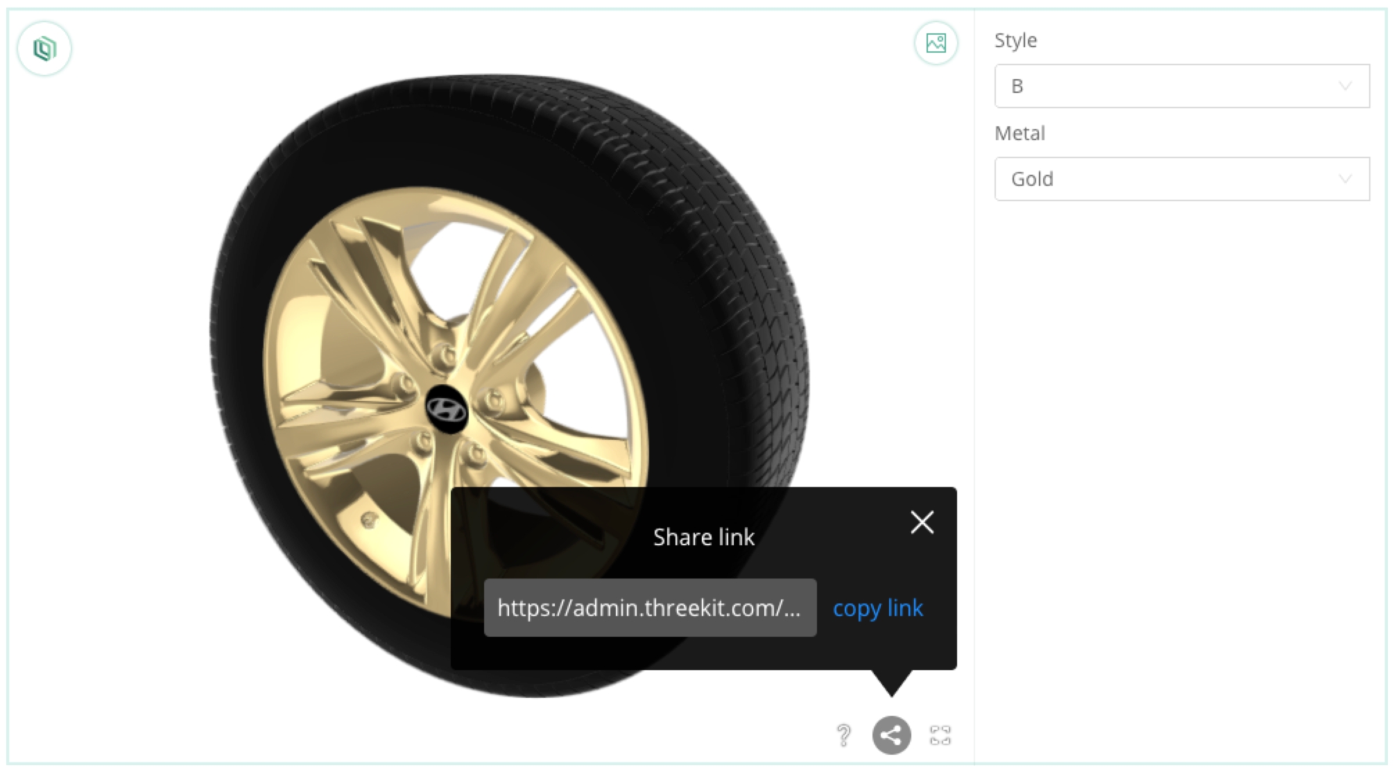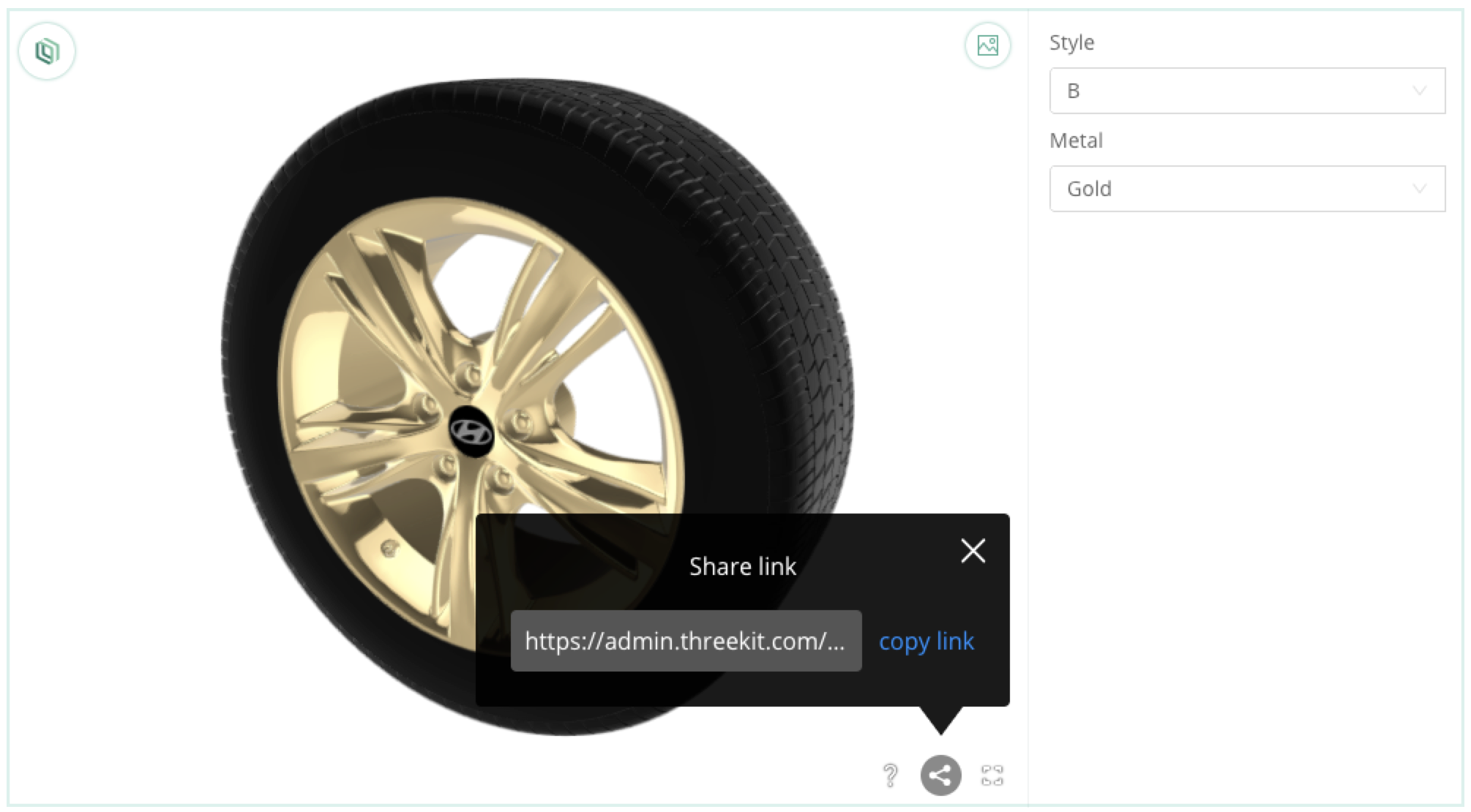 There are both a 3D and a 2D version of the Threekit Player. The 3D version of the player presents an interactive experience (shown below), and a path to Augmented Reality (AR), while the 2D Player allows the user to view renders based on combinations of attribute values.