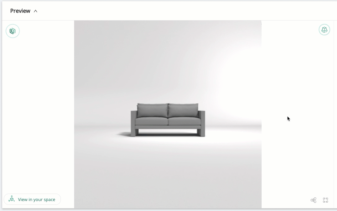 When on mobile, the user has the freedom to view the product in AR by pressing the "View in your space" button in the lower left of the player.