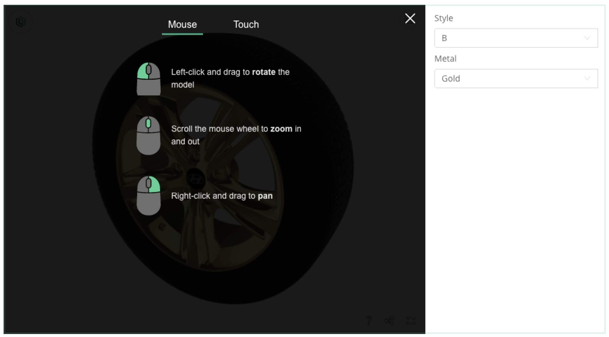 The "?" button provides information on Rotating, Zooming, and Panning<br>