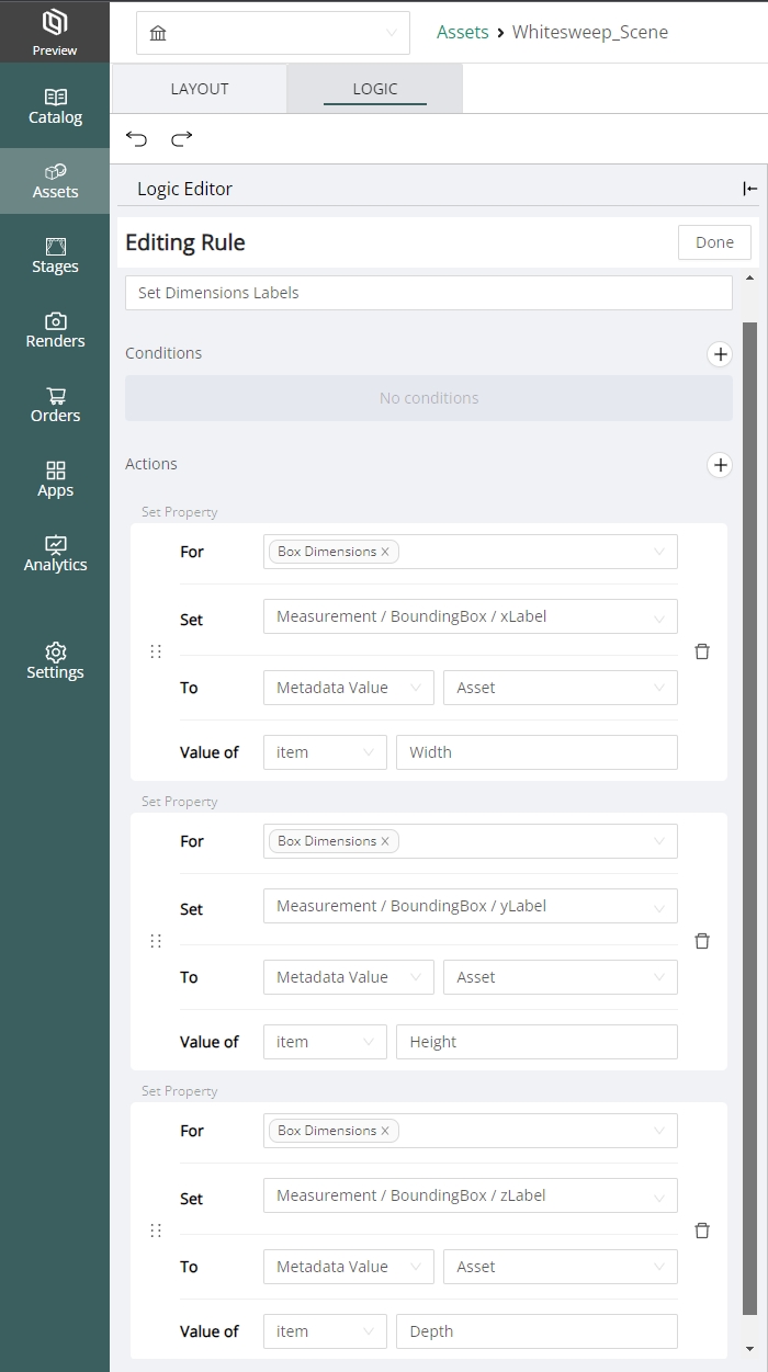 For example, this can be used to read the Width, Height, and Depth metadata fields from the Sofa, and display it as the label for a Box Dimension label properties.