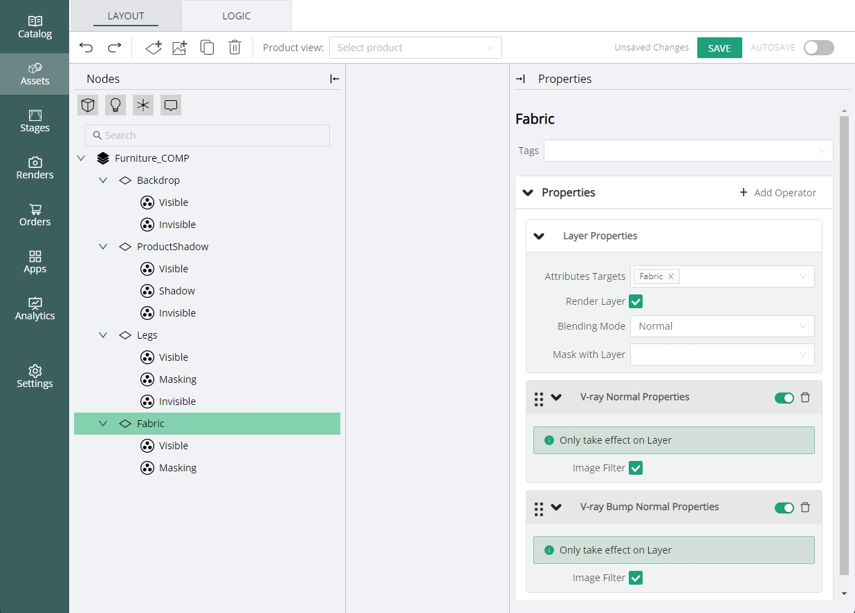 This operator can be added to a Comp Asset Layer in order to generate a separate a Vray Normals render pass. These additional render passes are useful in external compositing tools, to allow artists to adjust lighting in a scene after the initial render.