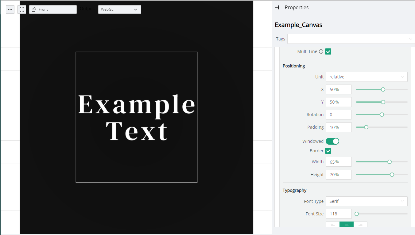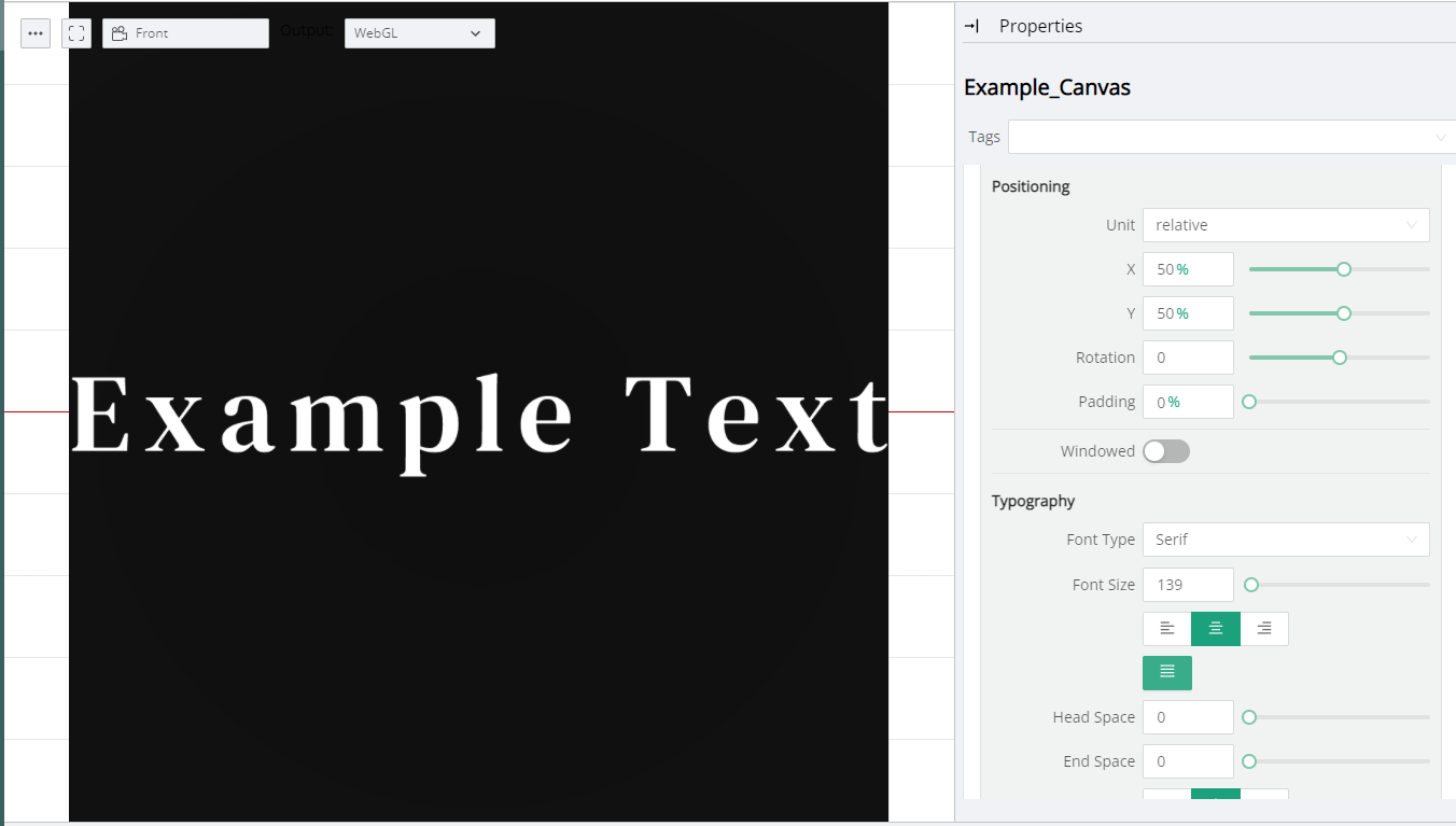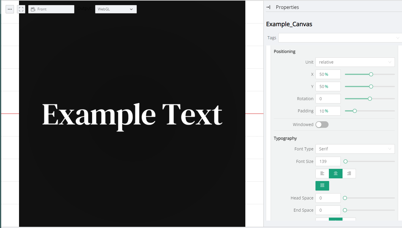 This section provides the necessary controls for positioning the Canvas Text on top of the underlying Canvas.