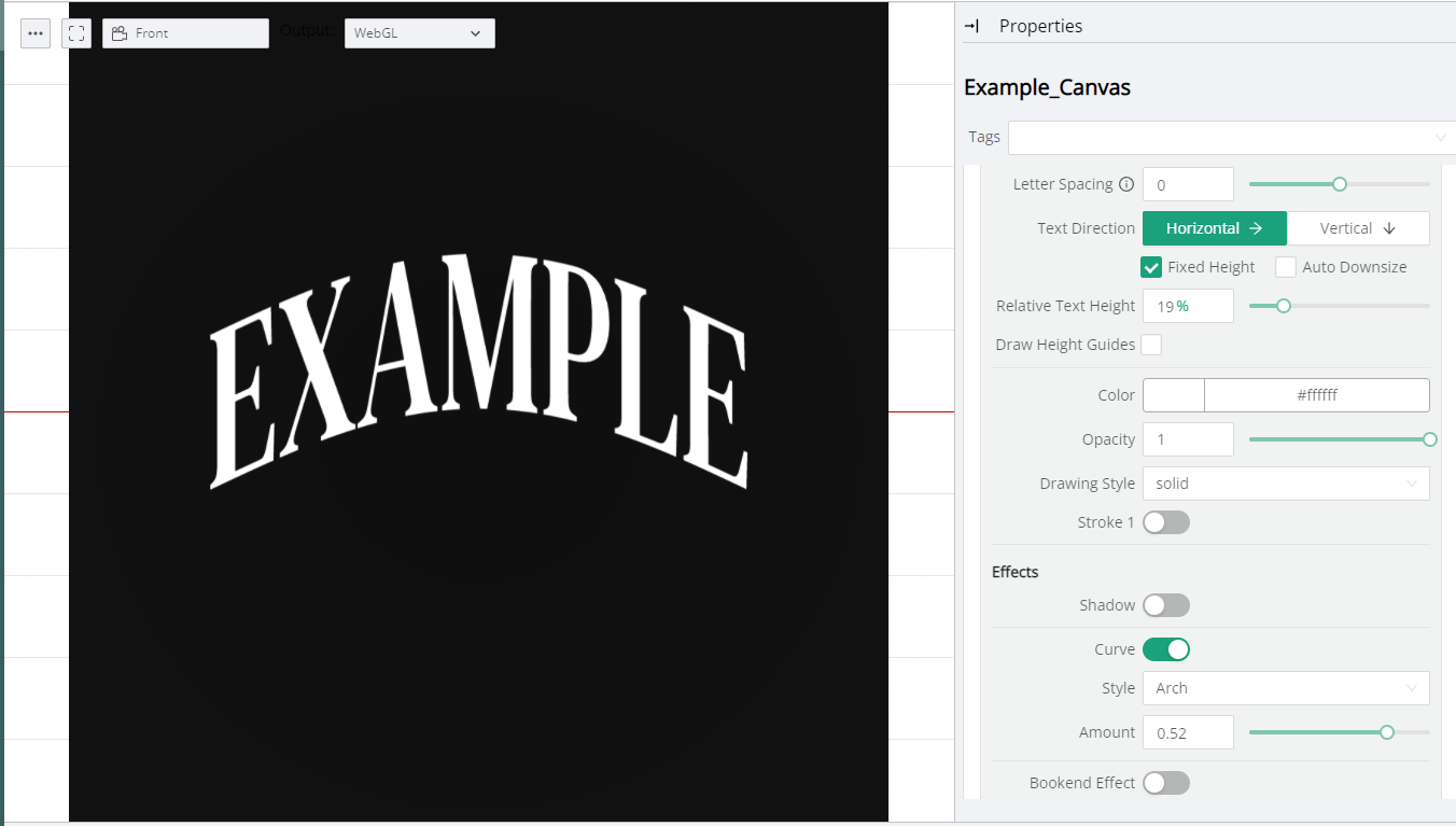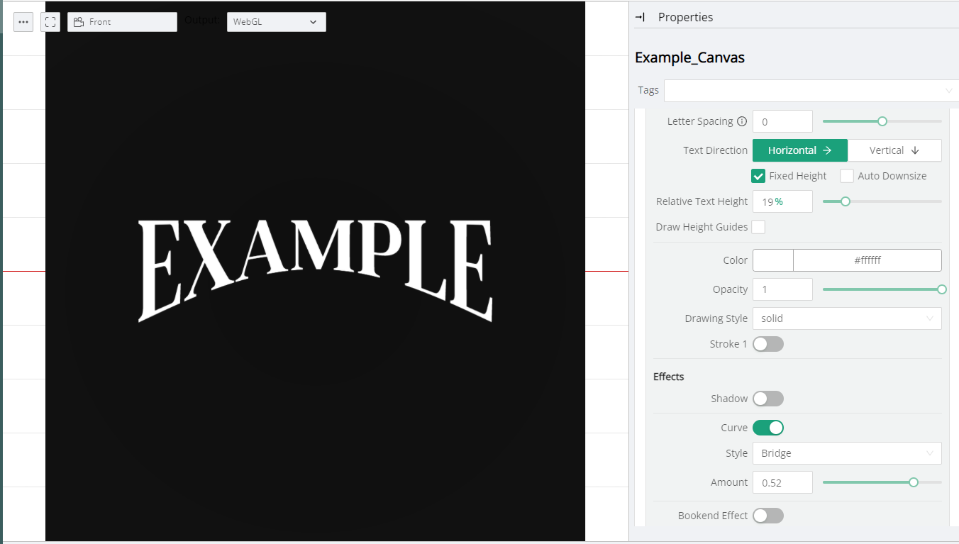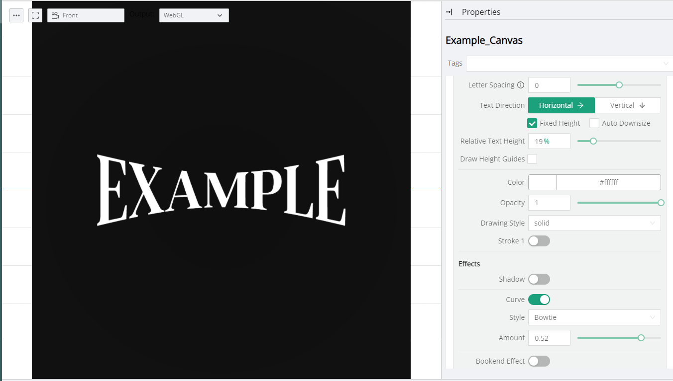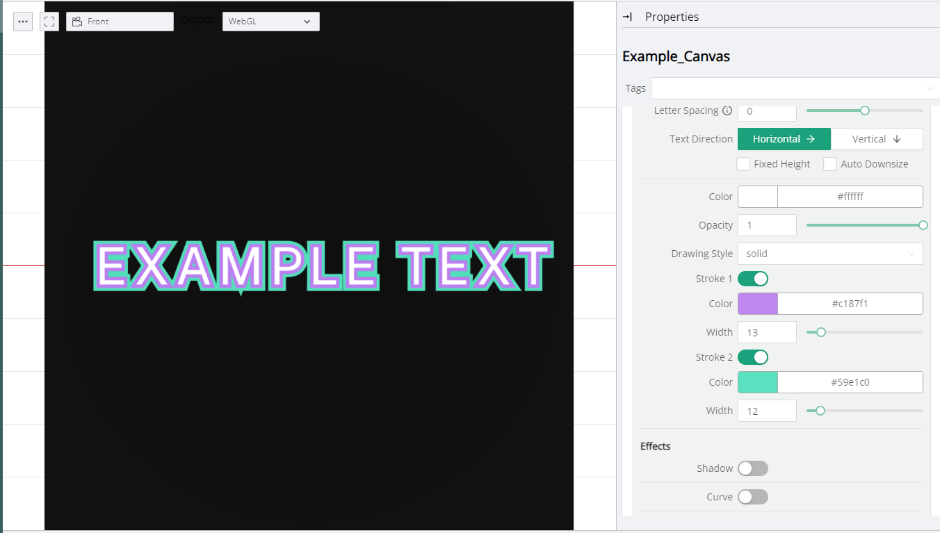 This section provides the necessary controls for positioning the Canvas Text on top of the underlying Canvas.