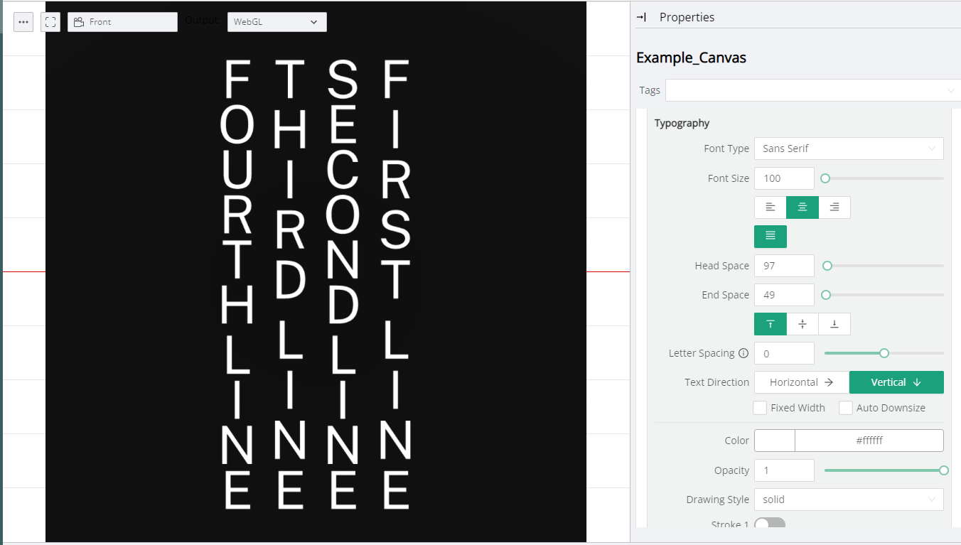Here is an example with Justified Text set at a large font size, filling up the whole Canvas horizontally. The padding is set to 0.