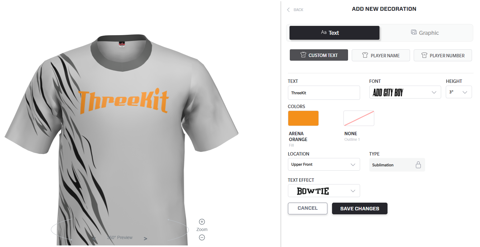 The Canvas Text Operator can be used to create personalized text effects, such as printed team names on a t-shirt:
