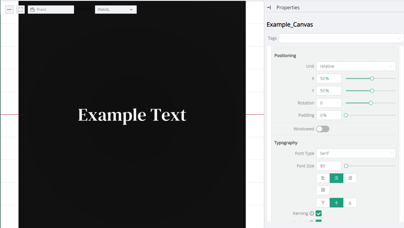 This section provides the necessary controls for positioning the Canvas Text on top of the underlying Canvas.&#x20;