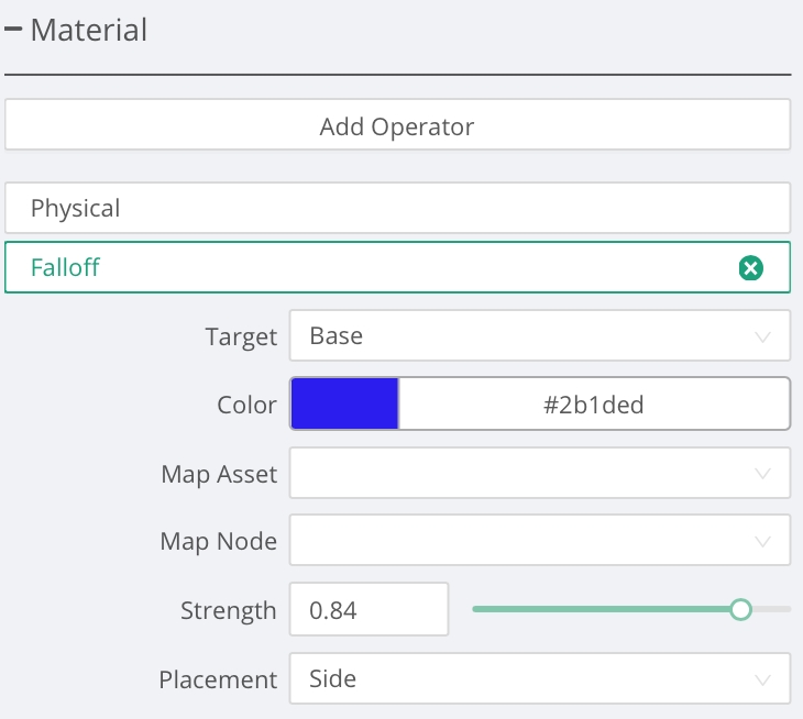 Falloff properties have been added to Physical Materials as an Operator.
