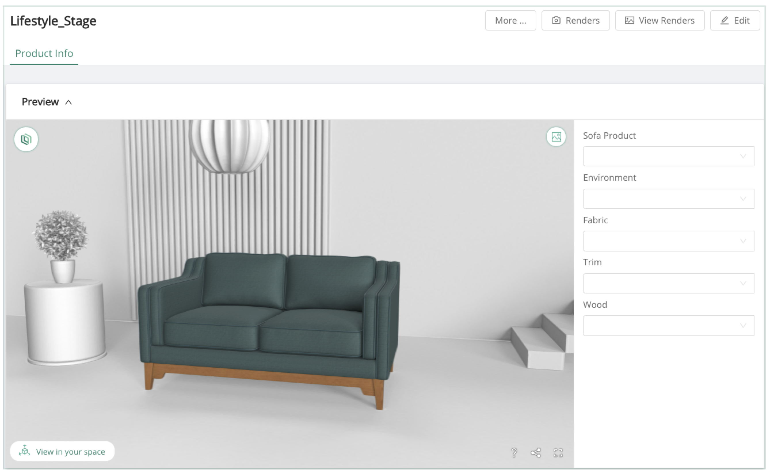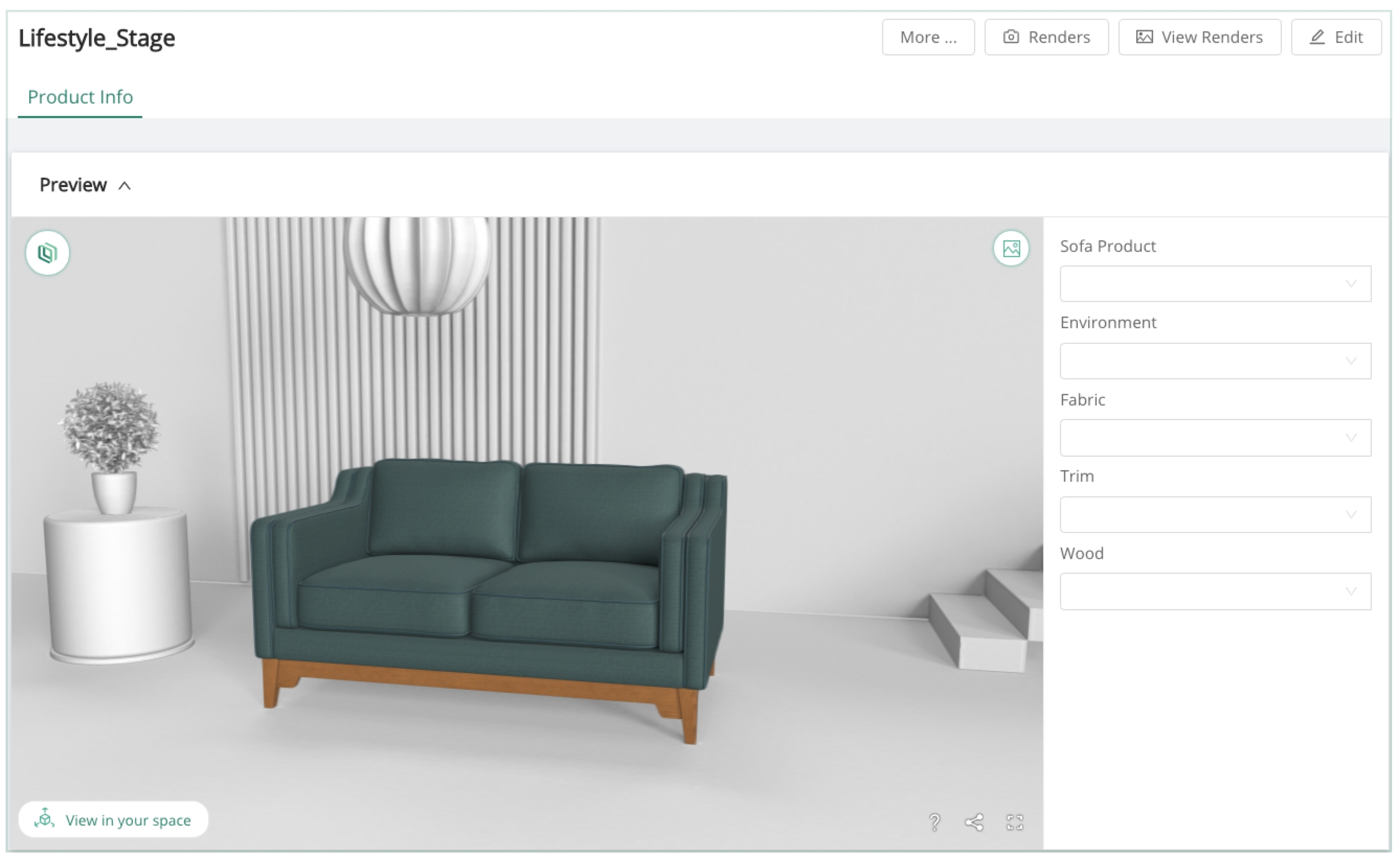 Stages will typically require a placeholder to dictate where a product should be placed. Beyond that bare minimal setup, the artist is free to expose scene properties for manipulation in accordance with the attributes created on the Stage, via the same process as creating a configurator.