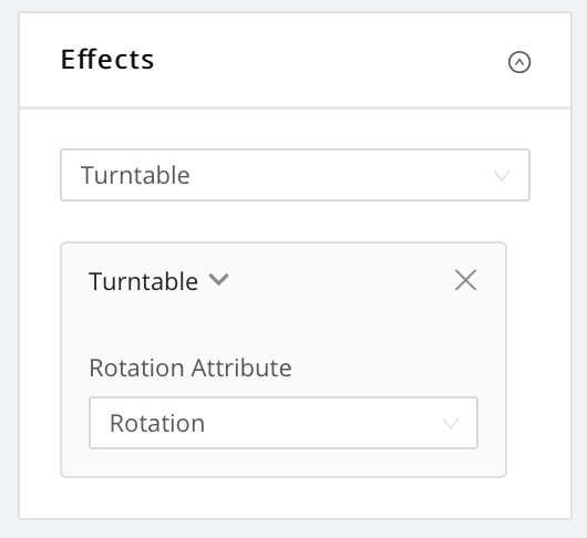 Select Turntable from the Effects dropdown and then select the Rotation attribute that should be manipulated when the user drags in the player.