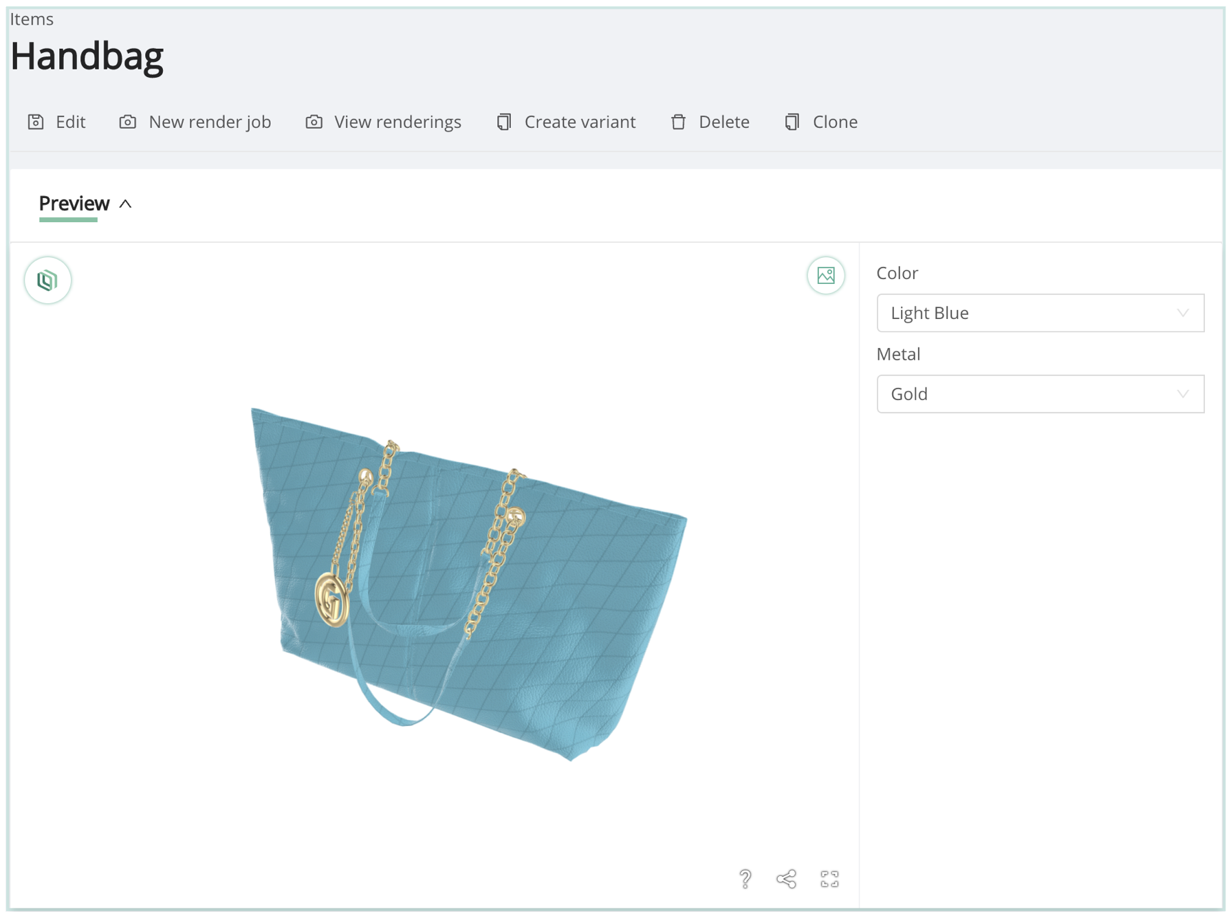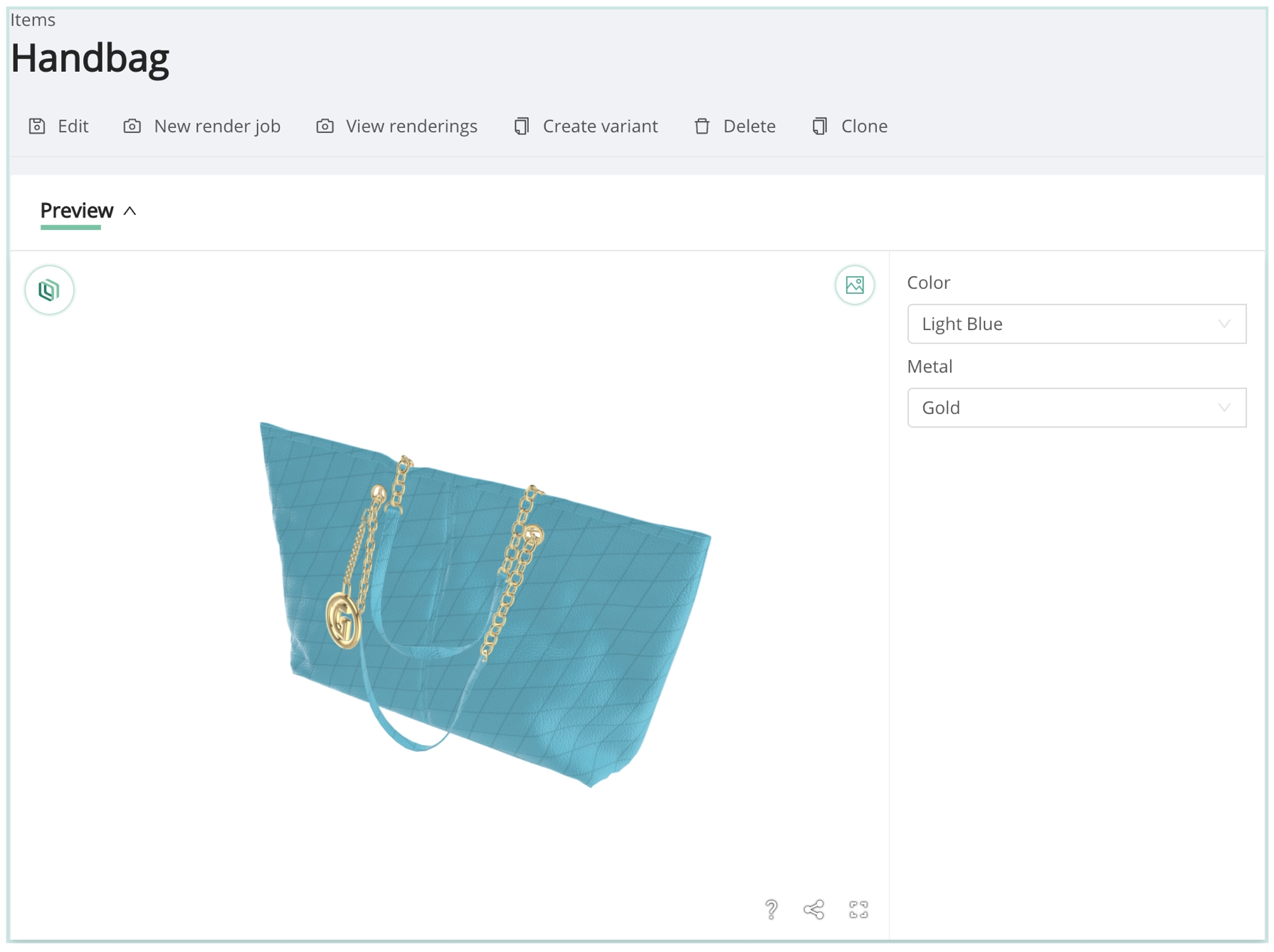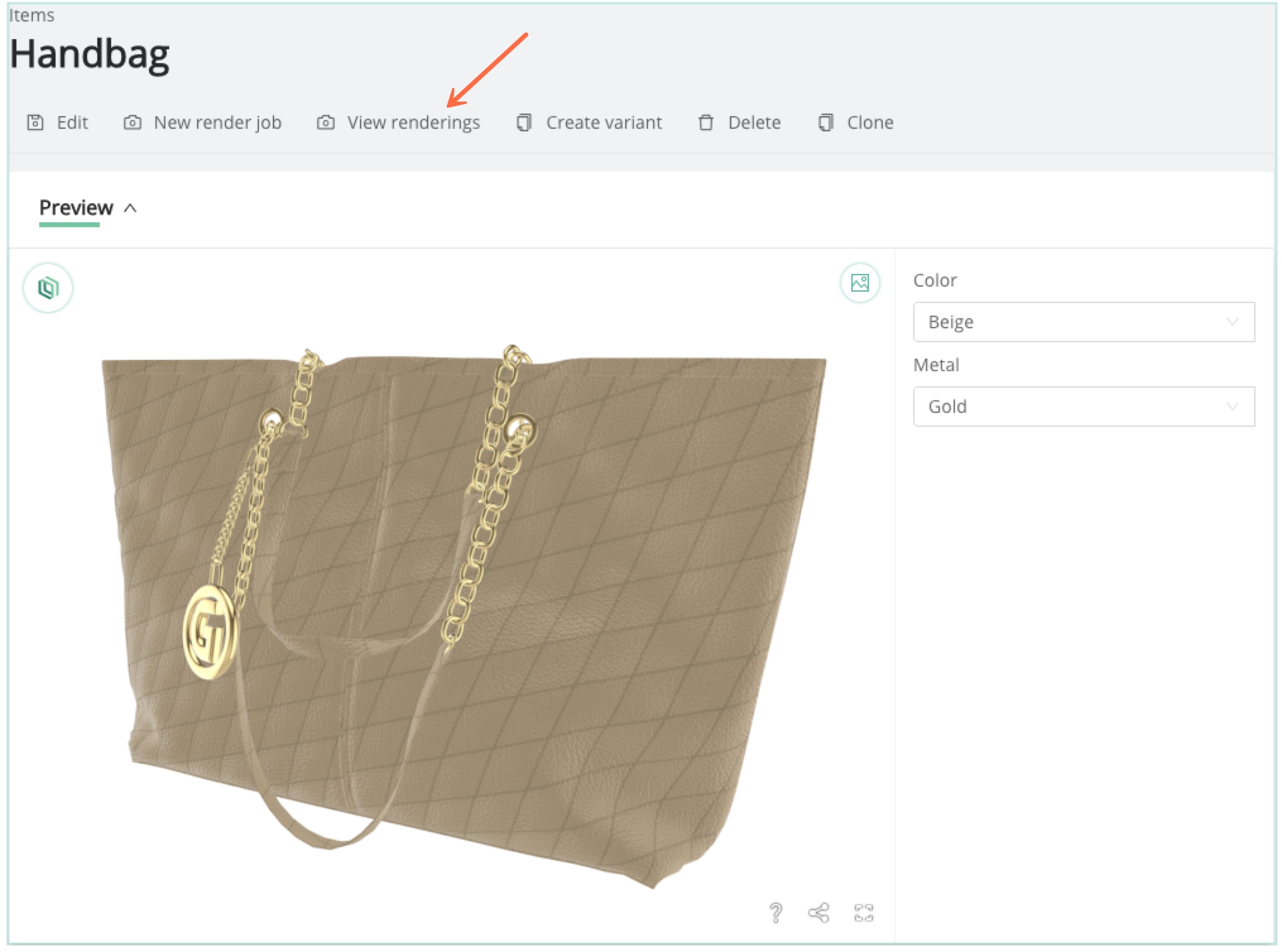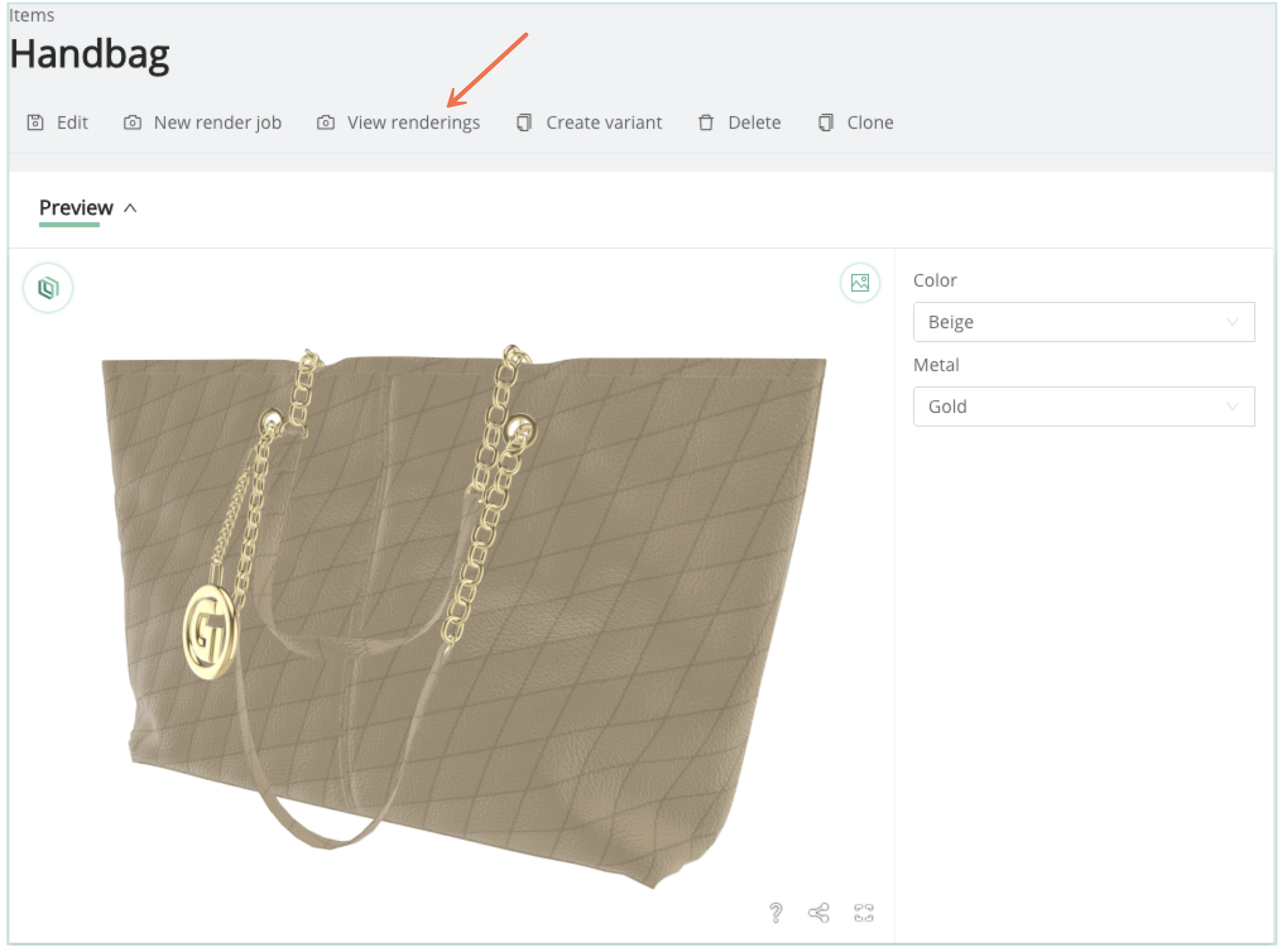 Similarly, all Render Jobs associated with a given Item are accessible via the View Renderings button above the Preview Panel of an Item.