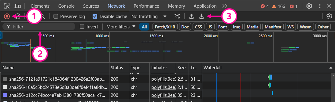 3. **Disable Cache:** Make sure the "Disable cache" option is checked. This will ensure that all requests are captured (For a cleaner recording, leave the **Disable Cache unchecked**, and instead **Right-Click** on the browser Reload button and choose **Empty Cache and Hard Reload**)